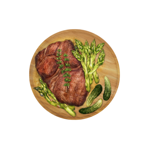 (3 jaja, pršuta, pečurke, paradajz, domaći kravlji sir, mix salata)